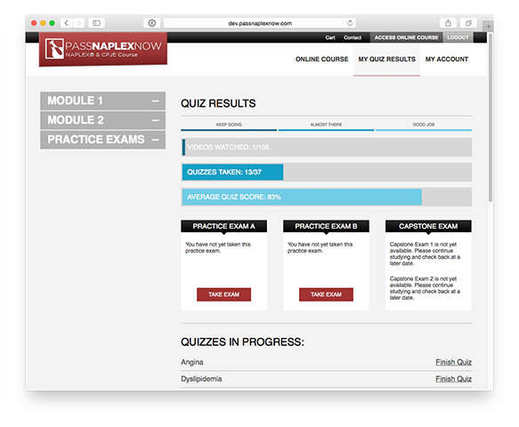 2500+ Board-type questions with answers, & detailed explanations. Progress Tracking allows you to follow and manage your question bank results, track the video lectures watched, and evaluate your progress on your user dashboard. You can watch the video lectures and take the quizzes as many times as needed until you feel comfortable and confident with all of the topics. At the end of your study, there are two comprehensive practice tests to conclude the material that has been covered.